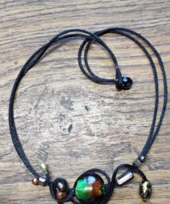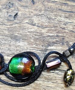 Collier en en satin noir avec verre de Murano, ambre, perles de rivière et de verre