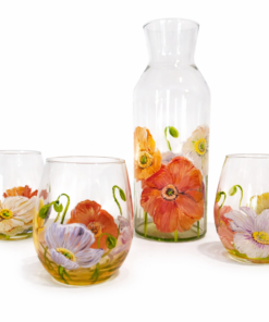 Pichet d’un litre avec 3 anémones peintes tout autour. vous pouvez avoir aussi les verres assortis pour une collection complète. compliment assuré de vos invités pour une table unique.