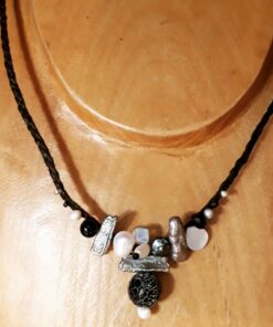 Collier – Perles de Lave, Biwa, Perles de Rivière, Nacre